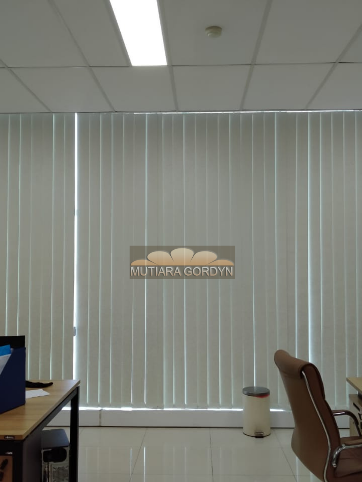 Vertical Blind tirai penutup jendela yang modern umumnya digunakan untuk ruangan perkantoran karena lebih terlihat formal dibandingkan dengan tirai Blinds lainnya, tirai jendela dengan pengaturan cahaya atau sinar matahari yang masuk secara Vertikal. Bahan kain yang terbuat dari polyester fiber glass dilapis dengan bahan khusus,dengan teknologi yang sempurna. Sehingga tidak melengkung dan tahan terhadap cuaca track box atas almunium solid + cat powder coating,lebih tebal,sangat lancar pada saat pengoperasian,tidak berisik dan anti macet.